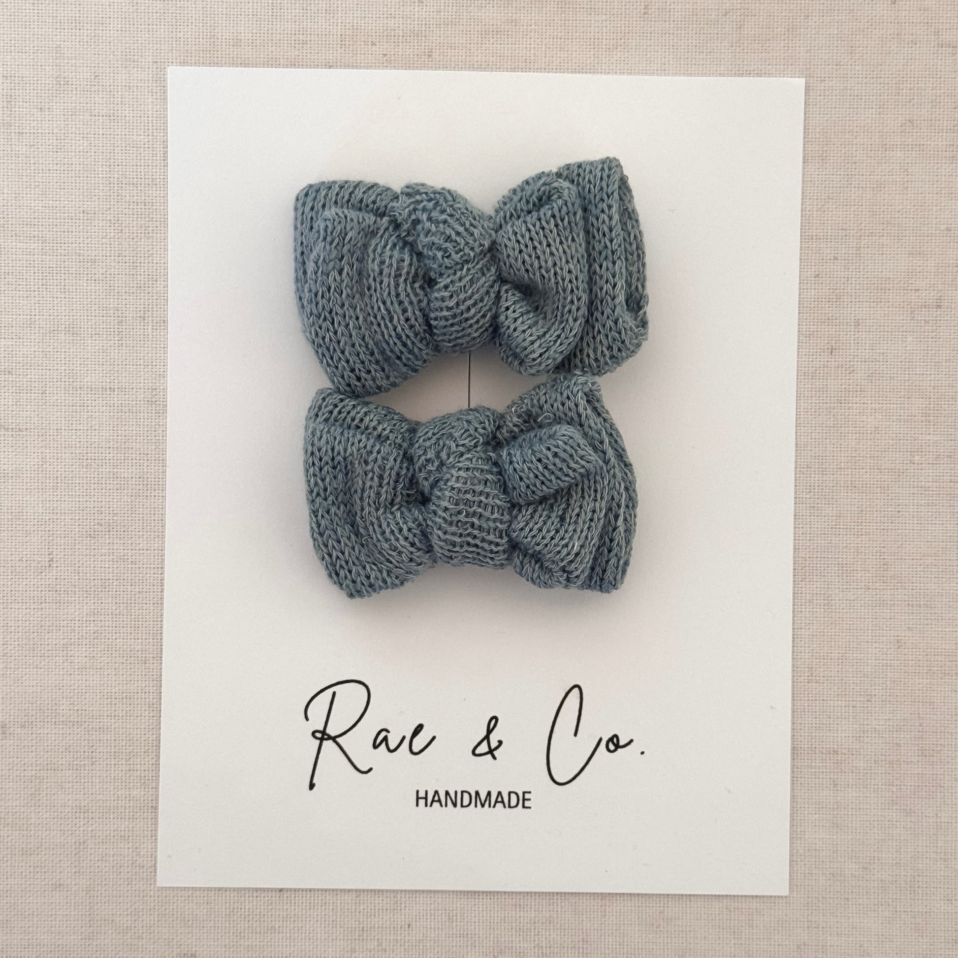 A soft chunky knit bow pair that feels cozy and timeless, perfect for year-round wear with a touch of texture. Comes as a set of two chunky mini piggies in clip style.