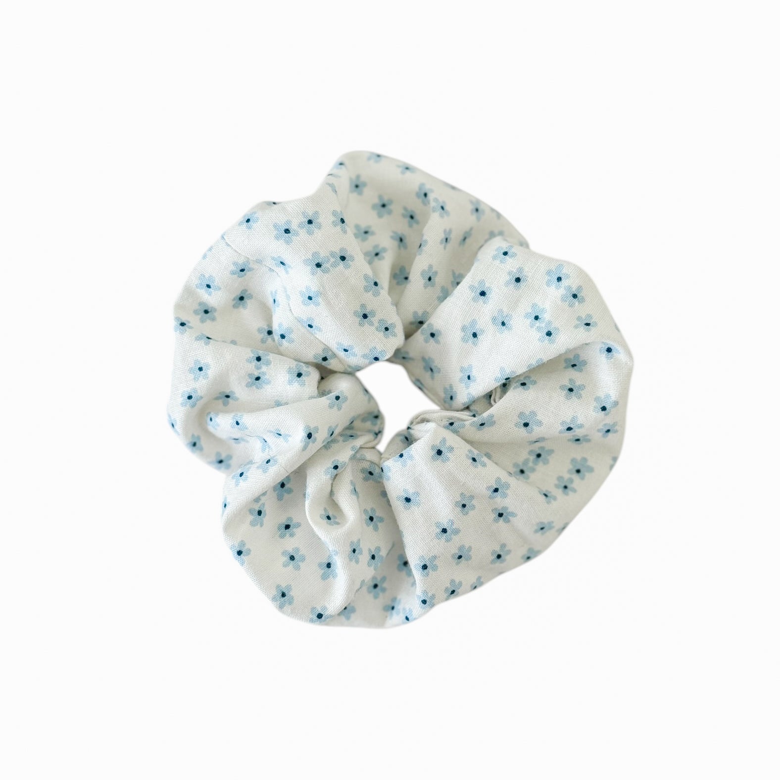 A soft floral scrunchie with a dainty blue print- the perfect everyday accessory. Matches our Tiny Blooms classic bow for littles.